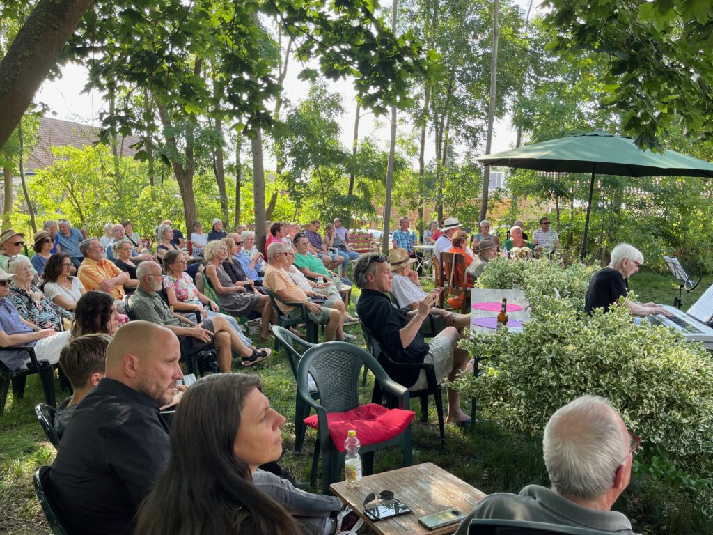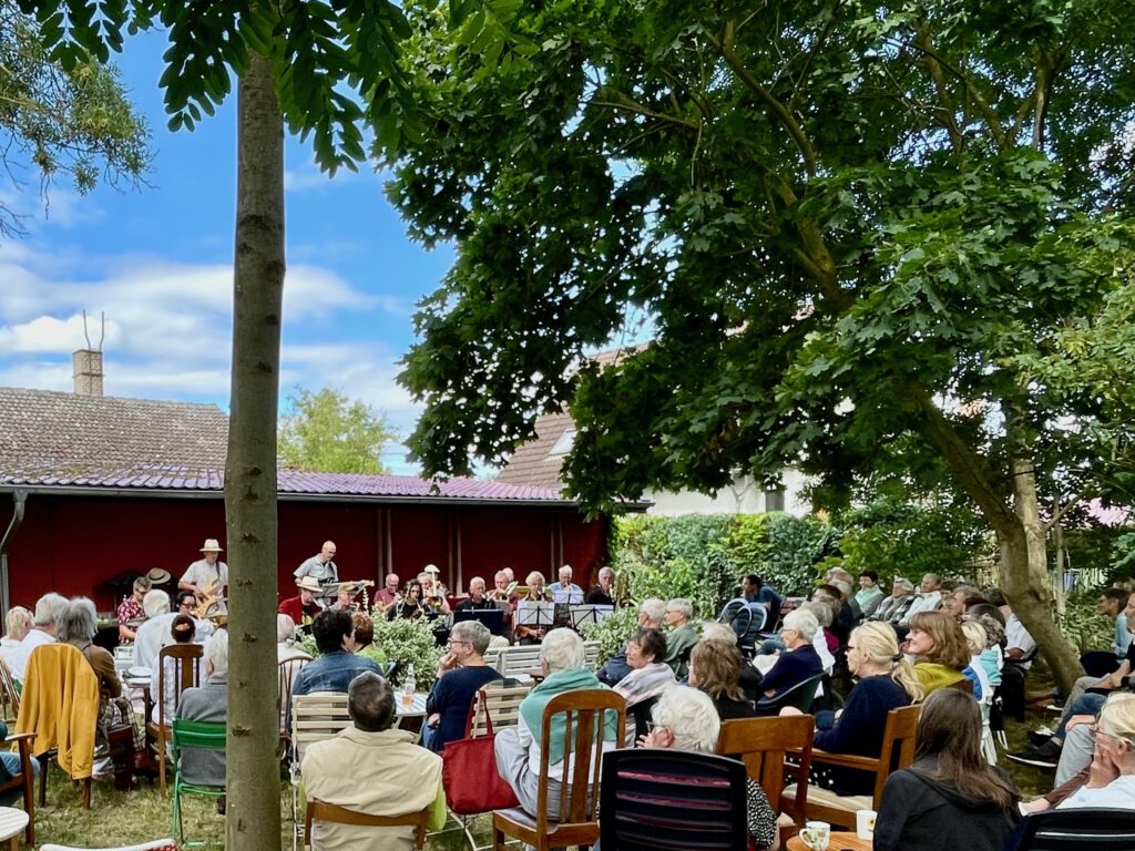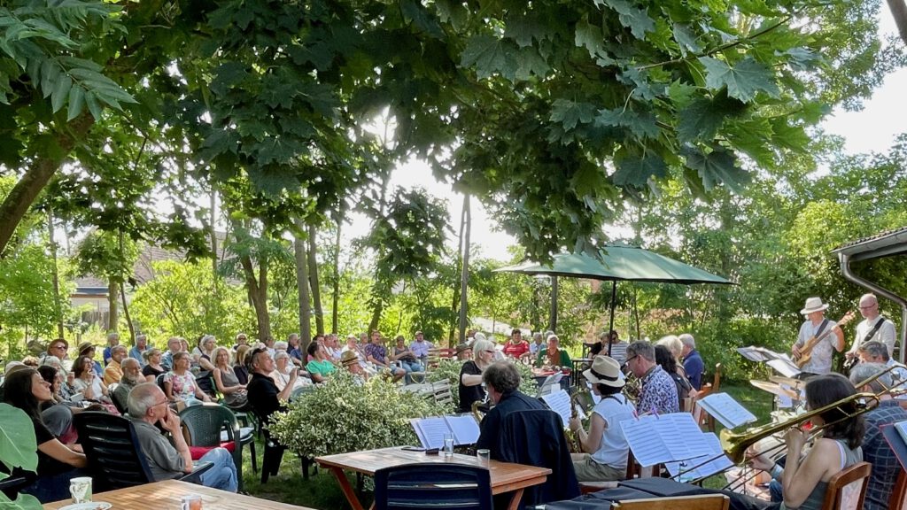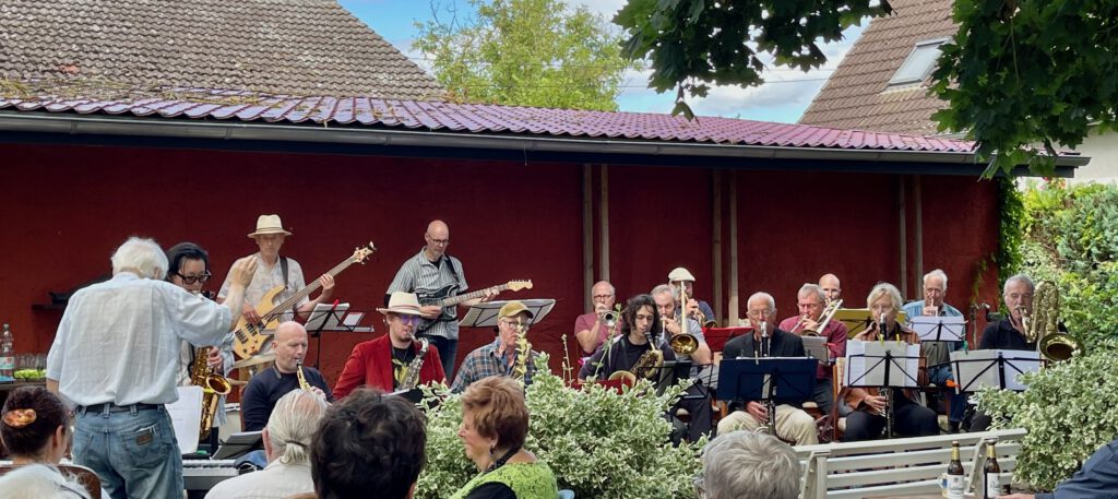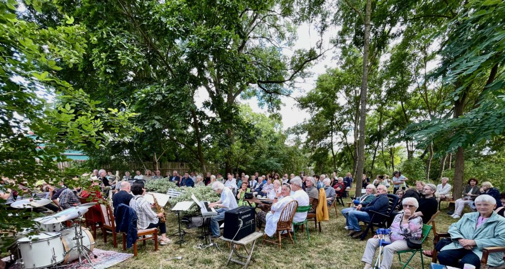 Durch Vermittlung vom Bass-Saxophonisten der Band, Sigi Drexler (Plänitz), konnten wir einen schönen Sommerabend mit der Berliner Jazz Band „Prokopätz“ im Wäldchen hinter dem Alten Konsum genießen. Hannes Zerbe war schon zu DDR Zeiten ein Jazz Pionier und ist auch darüber hinaus eine Ikone in der Jazz Welt. Er ist der Träger des Jazzpreises 2021 Berlin. Das Programm war abwechslungsreich mit sowohl für das Publikum neuen Stücken als auch Variationen von bekannten Stücken wie z.B. Space Oddity („Ground Control to Major Tom“) von David Bowie. Andere Lieder waren „Song von Mandaley“ von Kurt Weill, „La Fiesta“ von Chic Corea, „Sister Sadie“ von Horace Silver und „Leek“ von Willem Breuker. Daneben gab es mehrere Stücke des Bandleaders, Arrangeurs und Komponisten Hannes Zerbe.